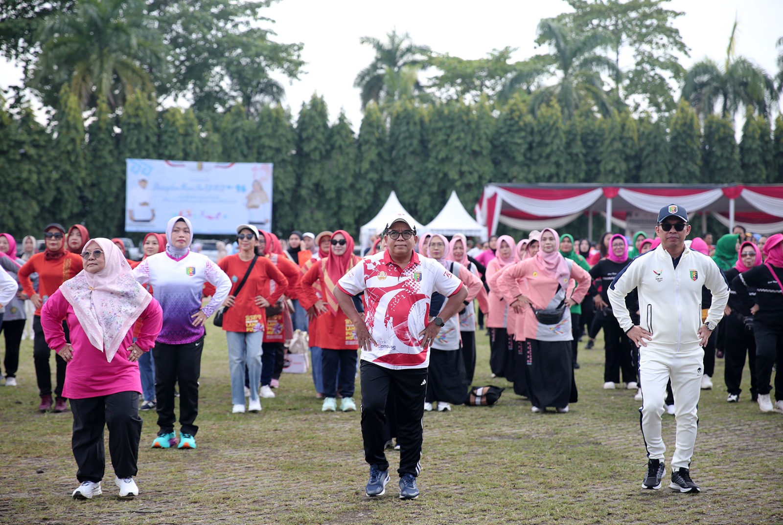 BANDARLAMPUNG —– Pj. Gubernur Lampung Samsudin dan Pj. Ketua Tim Penggerak PKK Provinsi Lampung Ibu Maidawati Retnoningsih Samsudin melaksanakan senam bersama dalam rangka memperingati Puncak Hari Ibu ke- 96 Tahun 2024 di Lapangan Korpri, Komplek Kantor Gubernur Lampung, Bandarampung, Jumat (27/12/2024).